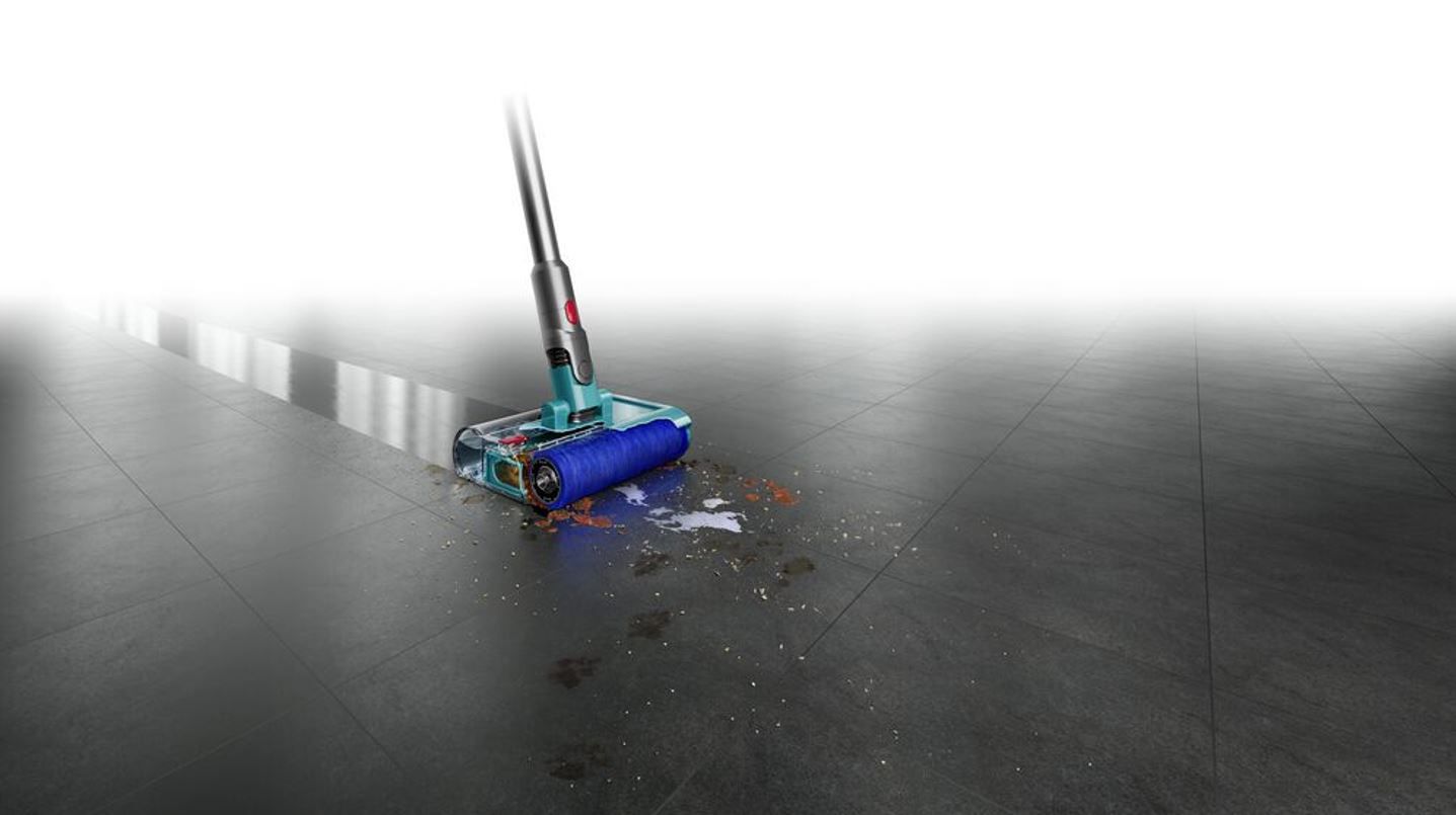 The Dyson Submarine™ wet roller head has been precision-engineered to deliver the right amount of water to effectively remove spills, tough stains, and small dry debris such as food crumbs.